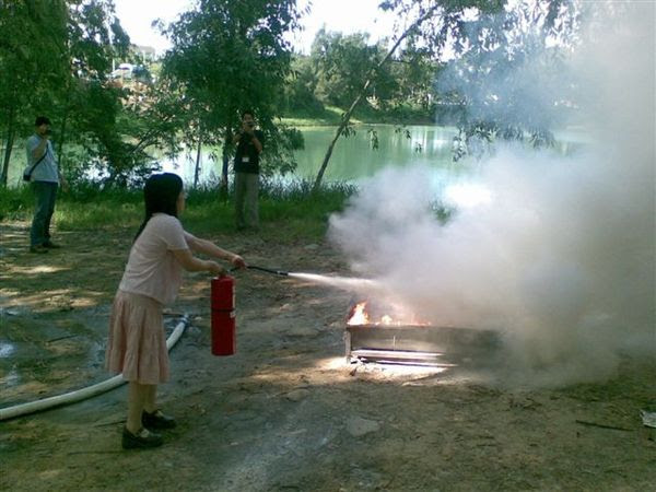 我以前進入中油之前也曾被送去中油桃園油庫受過打火訓練, 油池的面積比你們這個還大, 規定用一隻滅火器就要把火滅掉才算及格 :D